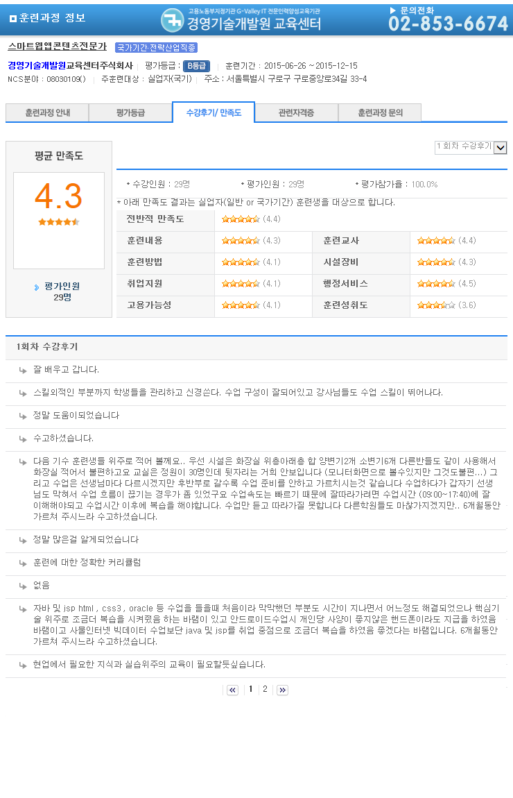 °æ¿µ±â¼ú°³¹ß¿ø±³À°¼¾ÅÍ¿¡¼ °øºÎÇÑ ±³À°»ýµéÀÌ °í¿ë³ëµ¿ºÎ(HRD-NET)¿¡¼ ÀÛ¼ºÇÑ ¼ö°Èıâ/¸¸Á·µµ¸¦ º¸½Ç ¼ö ÀÖ½À´Ï´Ù.
