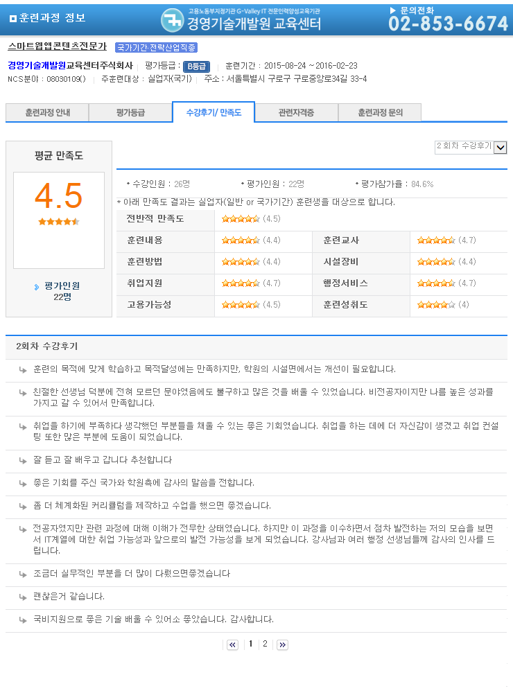 °æ¿µ±â¼ú°³¹ß¿ø±³À°¼¾ÅÍ¿¡¼ °øºÎÇÑ ±³À°»ýµéÀÌ °í¿ë³ëµ¿ºÎ(HRD-NET)¿¡¼ ÀÛ¼ºÇÑ ¼ö°Èıâ/¸¸Á·µµ¸¦ º¸½Ç ¼ö ÀÖ½À´Ï´Ù.