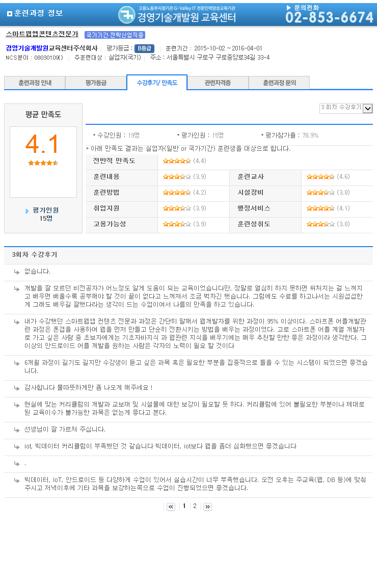 °æ¿µ±â¼ú°³¹ß¿ø±³À°¼¾ÅÍ¿¡¼ °øºÎÇÑ ±³À°»ýµéÀÌ °í¿ë³ëµ¿ºÎ(HRD-NET)¿¡¼ ÀÛ¼ºÇÑ ¼ö°Èıâ/¸¸Á·µµ¸¦ º¸½Ç ¼ö ÀÖ½À´Ï´Ù.