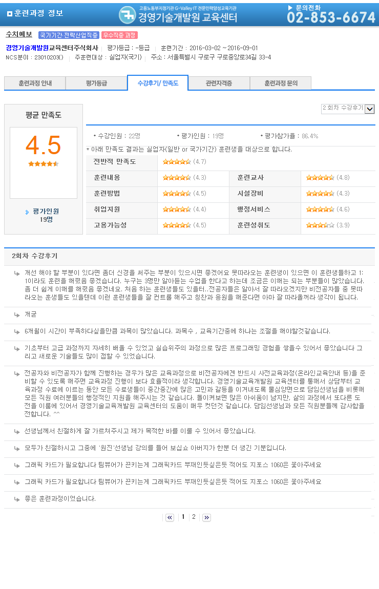 °æ¿µ±â¼ú°³¹ß¿ø±³À°¼¾ÅÍ¿¡¼ °øºÎÇÑ ±³À°»ýµéÀÌ °í¿ë³ëµ¿ºÎ(HRD-NET)¿¡¼ ÀÛ¼ºÇÑ ¼ö°Èıâ/¸¸Á·µµ¸¦ º¸½Ç ¼ö ÀÖ½À´Ï´Ù.