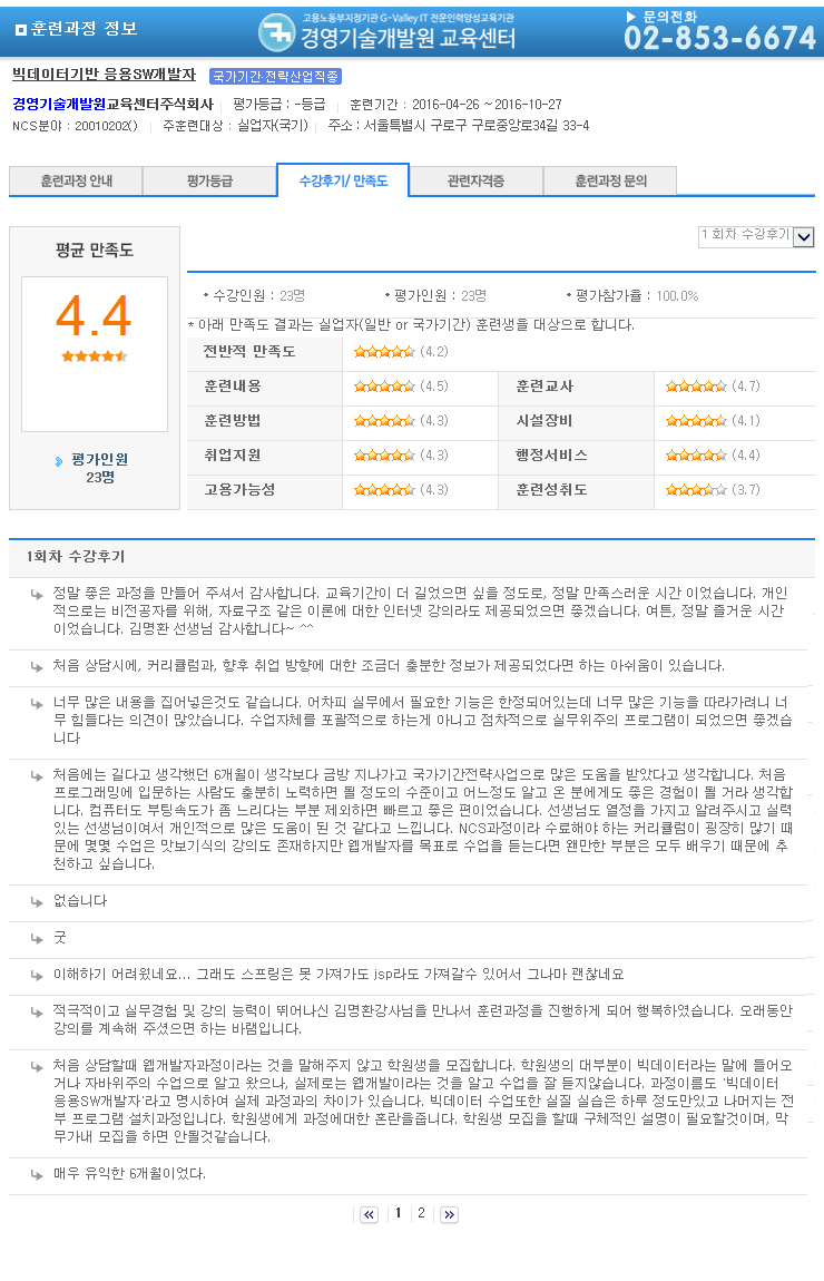 °æ¿µ±â¼ú°³¹ß¿ø±³À°¼¾ÅÍ¿¡¼ °øºÎÇÑ ±³À°»ýµéÀÌ °í¿ë³ëµ¿ºÎ(HRD-NET)¿¡¼ ÀÛ¼ºÇÑ ¼ö°Èıâ/¸¸Á·µµ¸¦ º¸½Ç ¼ö ÀÖ½À´Ï´Ù.