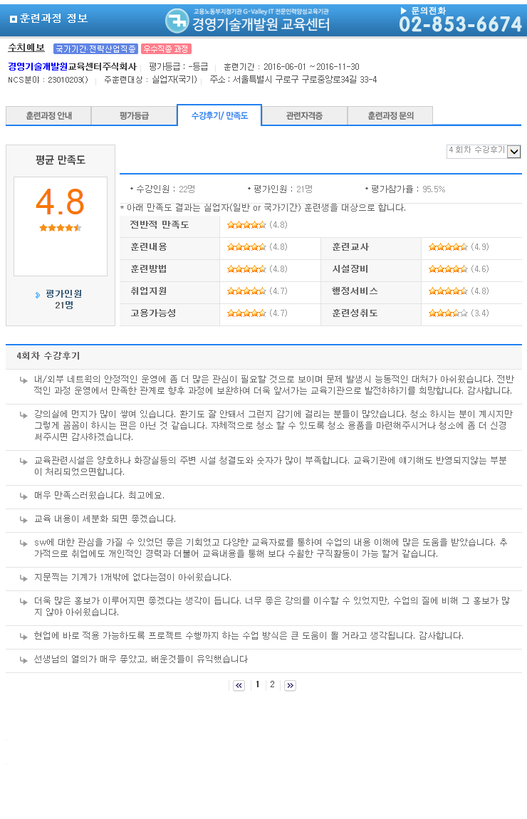 °æ¿µ±â¼ú°³¹ß¿ø±³À°¼¾ÅÍ¿¡¼ °øºÎÇÑ ±³À°»ýµéÀÌ °í¿ë³ëµ¿ºÎ(HRD-NET)¿¡¼ ÀÛ¼ºÇÑ ¼ö°Èıâ/¸¸Á·µµ¸¦ º¸½Ç ¼ö ÀÖ½À´Ï´Ù.