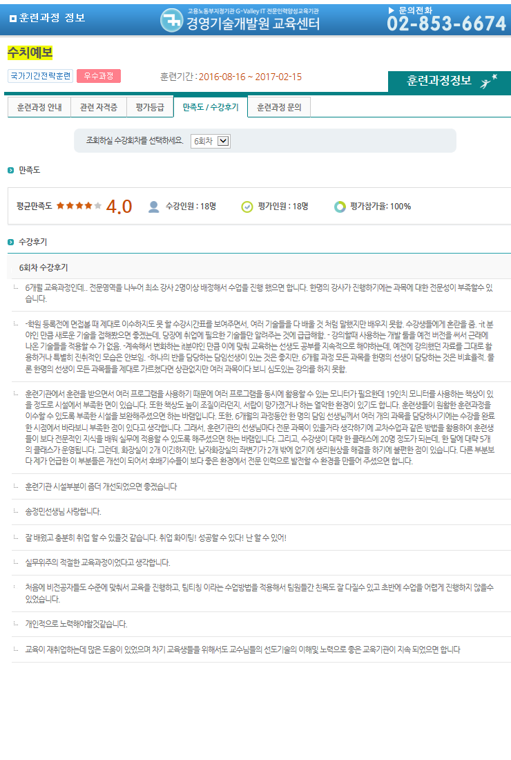 °æ¿µ±â¼ú°³¹ß¿ø±³À°¼¾ÅÍ¿¡¼ °øºÎÇÑ ±³À°»ýµéÀÌ °í¿ë³ëµ¿ºÎ(HRD-NET)¿¡¼ ÀÛ¼ºÇÑ ¼ö°Èıâ/¸¸Á·µµ¸¦ º¸½Ç ¼ö ÀÖ½À´Ï´Ù.