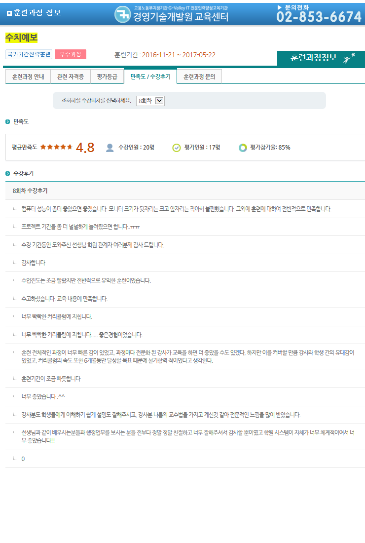 °æ¿µ±â¼ú°³¹ß¿ø±³À°¼¾ÅÍ¿¡¼ °øºÎÇÑ ±³À°»ýµéÀÌ °í¿ë³ëµ¿ºÎ(HRD-NET)¿¡¼ ÀÛ¼ºÇÑ ¼ö°Èıâ/¸¸Á·µµ¸¦ º¸½Ç ¼ö ÀÖ½À´Ï´Ù.