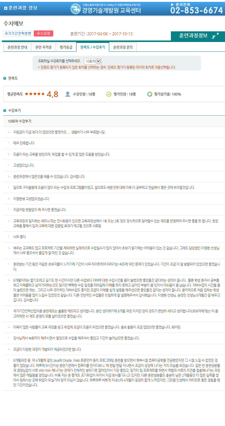 °æ¿µ±â¼ú°³¹ß¿ø±³À°¼¾ÅÍ¿¡¼ °øºÎÇÑ ±³À°»ýµéÀÌ °í¿ë³ëµ¿ºÎ(HRD-NET)¿¡¼ ÀÛ¼ºÇÑ ¼ö°Èıâ/¸¸Á·µµ¸¦ º¸½Ç ¼ö ÀÖ½À´Ï´Ù.