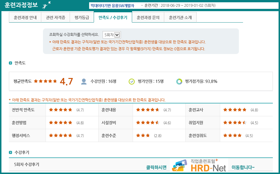 ºòµ¥ÀÌÅͱâ¹Ý ÀÀ¿ëSW°³¹ßÀÚ-5Â÷(ÀÚ¹Ù/ºòµ¥ÀÌÅÍ) °úÁ¤> HRD ¼ö°ÈÄ±â ¹× ¸¸Á·µµ