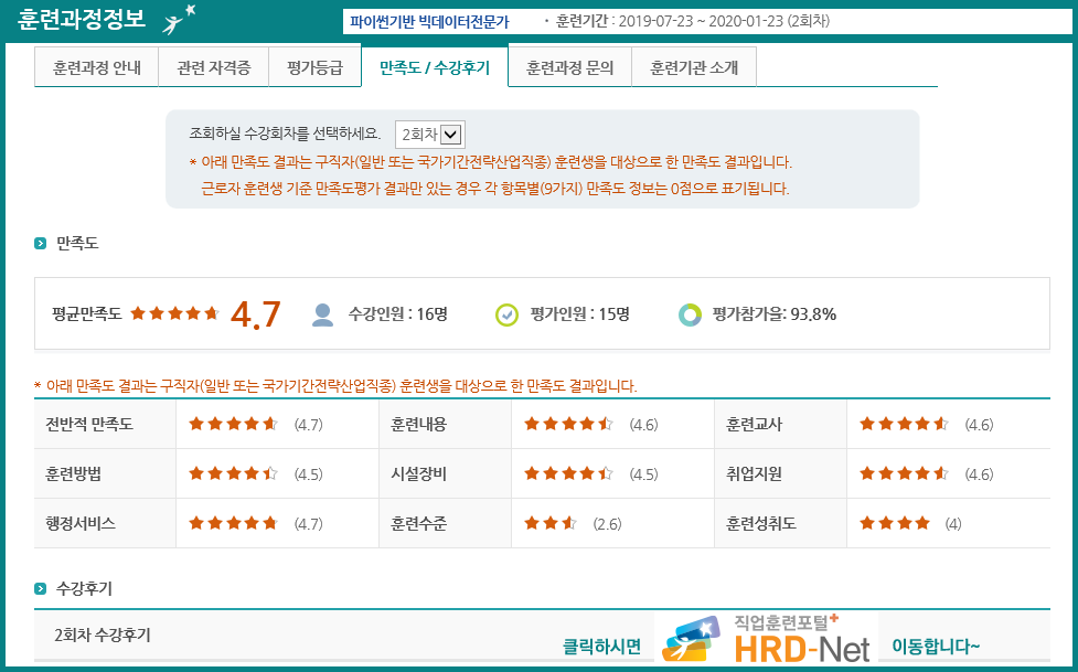 ÆÄÀ̽ã±â¹Ý ºòµ¥ÀÌÅÍÀü¹®°¡-2Â÷(ÀÚ¹Ù/ºòµ¥ÀÌÅÍ) °úÁ¤> HRD ¼ö°ÈÄ±â ¹× ¸¸Á·µµ