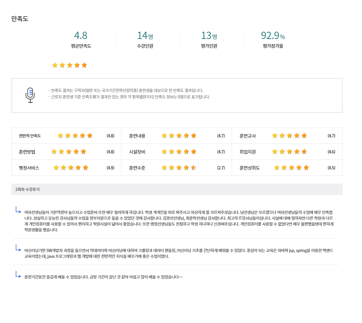 °æ¿µ±â¼ú°³¹ß¿ø±³À°¼¾ÅÍ¿¡¼ °øºÎÇÑ ±³À°»ýµéÀÌ °í¿ë³ëµ¿ºÎ(HRD-NET)¿¡¼ ÀÛ¼ºÇÑ ¼ö°Èıâ/¸¸Á·µµ¸¦ º¸½Ç ¼ö ÀÖ½À´Ï´Ù.