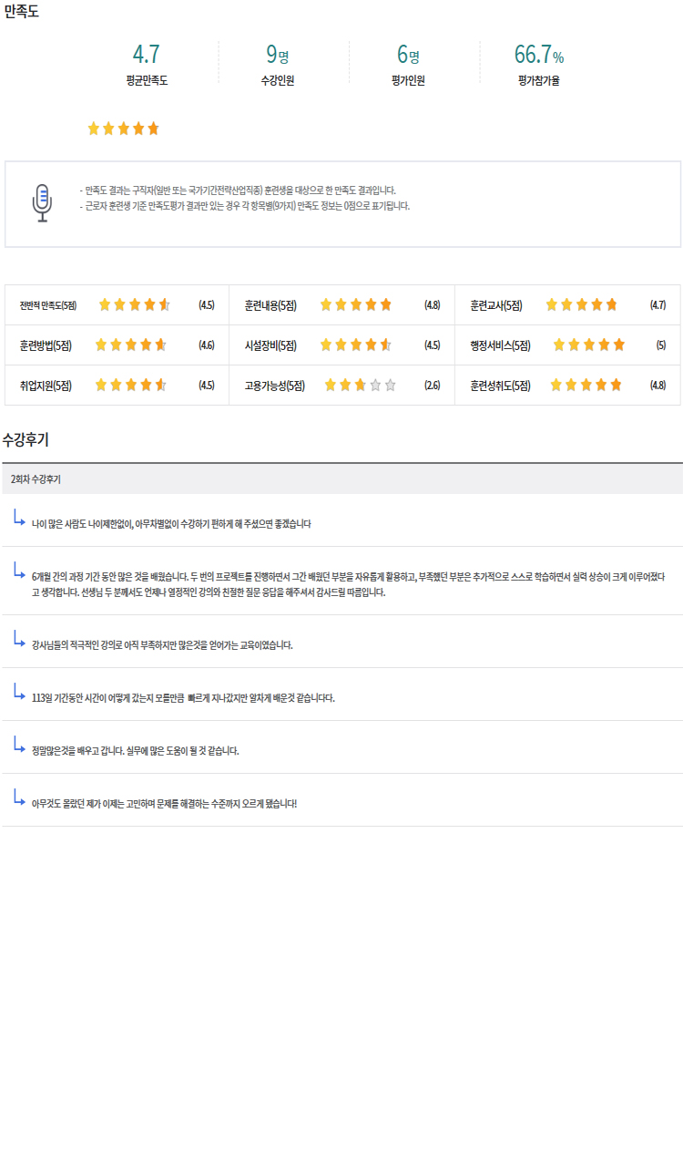 °æ¿µ±â¼ú°³¹ß¿ø±³À°¼¾ÅÍ¿¡¼ °øºÎÇÑ ±³À°»ýµéÀÌ °í¿ë³ëµ¿ºÎ(HRD-NET)¿¡¼ ÀÛ¼ºÇÑ ¼ö°Èıâ/¸¸Á·µµ¸¦ º¸½Ç ¼ö ÀÖ½À´Ï´Ù.