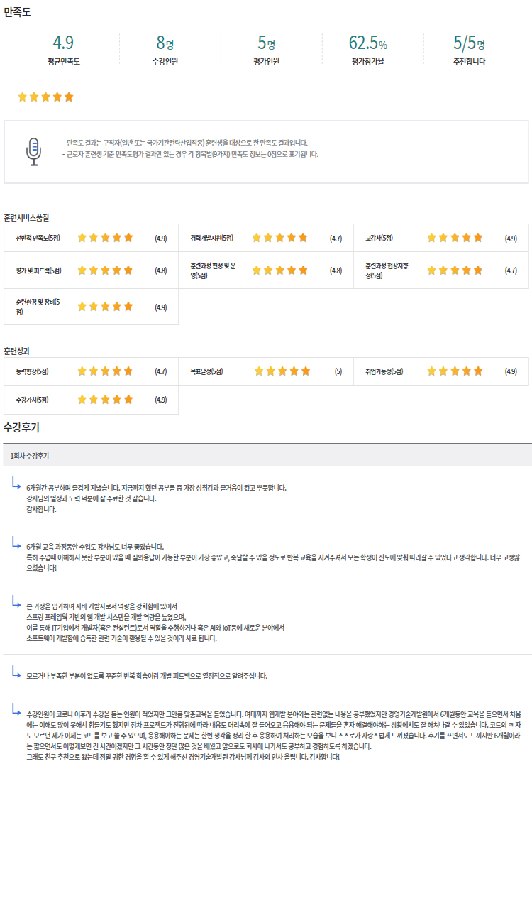 °æ¿µ±â¼ú°³¹ß¿ø±³À°¼¾ÅÍ¿¡¼ °øºÎÇÑ ±³À°»ýµéÀÌ °í¿ë³ëµ¿ºÎ(HRD-NET)¿¡¼ ÀÛ¼ºÇÑ ¼ö°Èıâ/¸¸Á·µµ¸¦ º¸½Ç ¼ö ÀÖ½À´Ï´Ù.