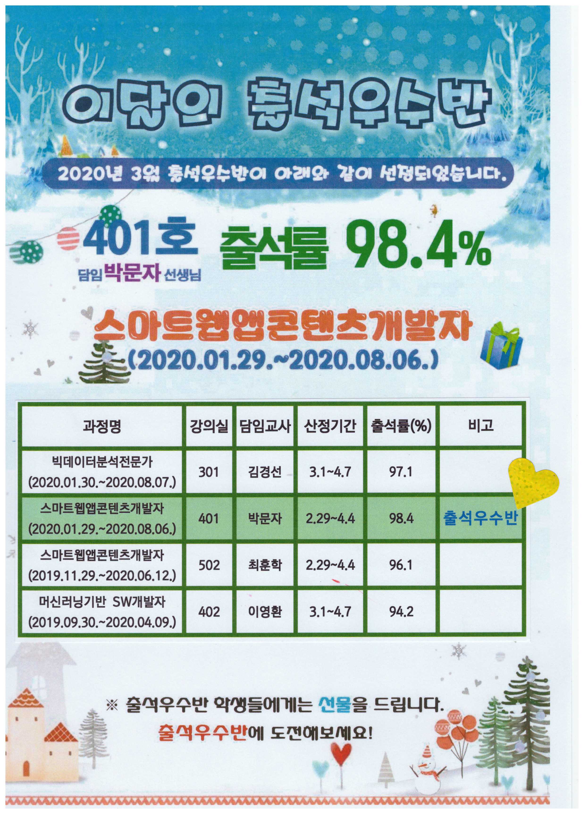 º½ÀÌ ¼ºÅ ´Ù°¡¿À°í ÀÖ´Â 3¿ù, ÀÌ ´ÞÀÇ Ãâ¼®¿ì¼ö¹ÝÀÌ ¼±Á¤µÇ¾ú½À´Ï´Ù!